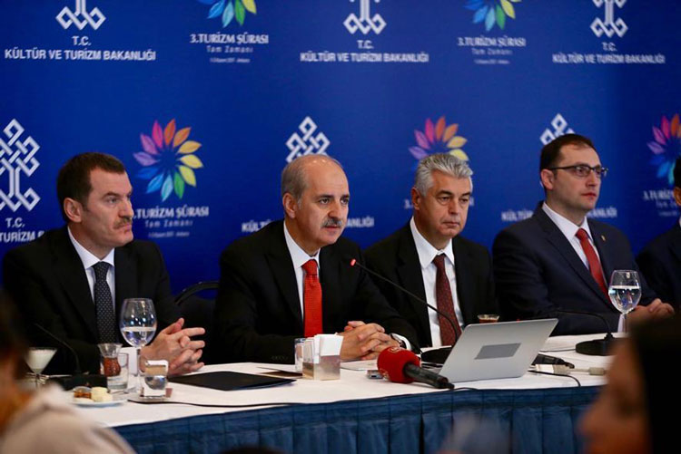 Turizmde yeni stratejik planın ortaya konulması gerektiğini bildiren Kurtulmuş, “Burada konuşulanları en kısa zamanda sonuçlandıracağız. Kurum ve kuruluşlar arasında koordinasyon, bakanlıklar arasında koordinasyon, turizm yönetimi, destinasyon yönetimi ve bölgesel yönetim bakımından koordinasyonun bir ihtiyaç olduğu açıktır. 8 bakan arkadaşımızla oturduk çok verimli bir toplantı oldu. Çok fazla yasal düzenlemeyi yeniden gözden geçirmek durumundayız. Özellikle yeni bir turizm yasasına ihtiyaç olduğu da açıktır. Bununla ilgili çalışmalarımızı önümüzdeki dönemde sonuçlandıracağız” açıklamasında bulundu.