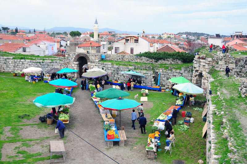 Sığacık’ın gezilebilecek yerlerinden biri de Kaleiçi’nde kurulan organik pazar. Türkiye’nin ilk cittaslow (sakin) kenti Seferihisar’ın Sığacık Mahallesi’nde kurulan Kaleiçi Organik Pazarı, çiftçiler ve ev hanımlarına yeni bir iş kapısı oluşturuyor.