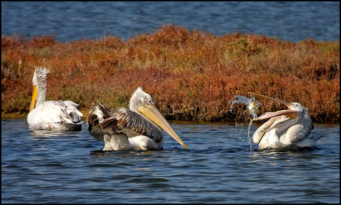 ÖMER DÖNDÜREN: Tepeli pelikan Türkiye’de sadece Ardahan’da Aktaş Gölü’nde, Balıkesir’de Manyas Gölü’nde, Aydın’da Büyük Menderes Deltası’nda ve İzmir’de Gediz Deltası’nda görülüyor. Nesli tehlike altında ve dünya popülasyonu 15 bin kadar. Her yıl İzmir’de 70 çift yuva yapıyor. İyi bir rakam. Homa Dalyanı’nın içindeki adacıklarda koloni halinde yuvalıyorlar.