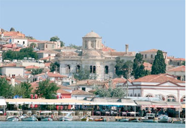 Cunda Adası’nda görülebilecek birçok kilise ve manastır bulunuyor. Bunlardan biri de klasik Bizans mimarisi stilindeki Taksiyarhis Kilisesi. Adanın en görkemli yapısı olma özelliğini taşıyan kilise, adeta yıllara meydan okuyor. Yapım tarihi 1873 olan metropol kilisesi içinde balık derisi üzerine işlenmiş Yunus Peygamber’in, Azrail, Cebrail meleklerinin ikonları bulunuyor. Kilise yıllardır turistlerin uğrak noktası. Bugün yıkılma tehlikesiyle karşı karşıya olmasına karşın Taksiyarhis Kilisesi, adanın hala en çok ziyaret edilen noktası.