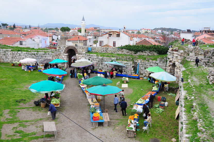 Dede: İyi gözlemcisin! Evet; Kale içinde, alanda ve sokaklarda köylüler, kendi yetiştirdikleri organik ürünleri satıyorlar. Özellikle hanımlar, el hünerlerini de gösterip, aile bütçelerine katkıda bulunuyor!